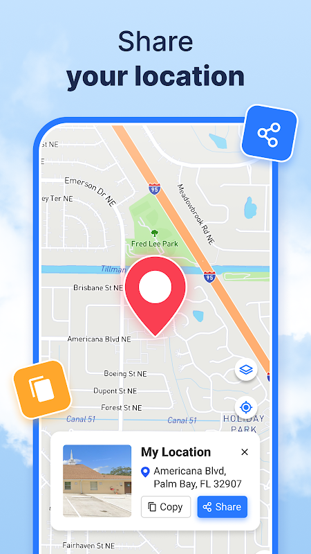 Map Directions With Voice Navigation guides you to your destination. Real-time route adjustments are provided through live updates, easing the need for constant attention. GPS Maps: Live Navigation alters your course automatically to account for missed turns.