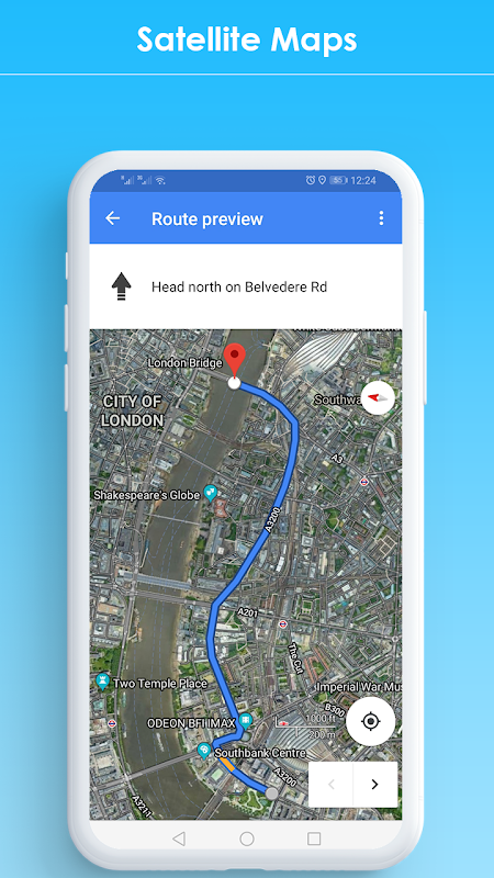 GPS Navigation is Location Route Finder application by Maps with Driving directions for android with satellite maps: Road maps and voice navigation for your ease while driving biking or cycling. you just speak the location name without typing. GPS for Car, bike trucks and cycling. Earth maps HD via satellite. Route map with estimated time of arrival with turn by turn navigational assistance. Digital Speedometer we added for the user that calculates Max speed Average speed Distance and Time of your entire travel. Find nearby places with one click. Explore tourist attractions nearby you.