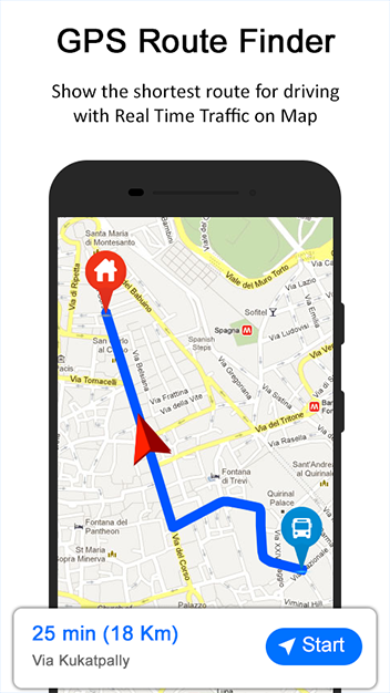 GPS Route Finder - GPS, Maps, Navigation & Traffic with variety of Features such as GPS shortest Route finder, Driving route, Current Location, Navigation, Directions, Map Location Finder Sharing Location with Friends and Family.
