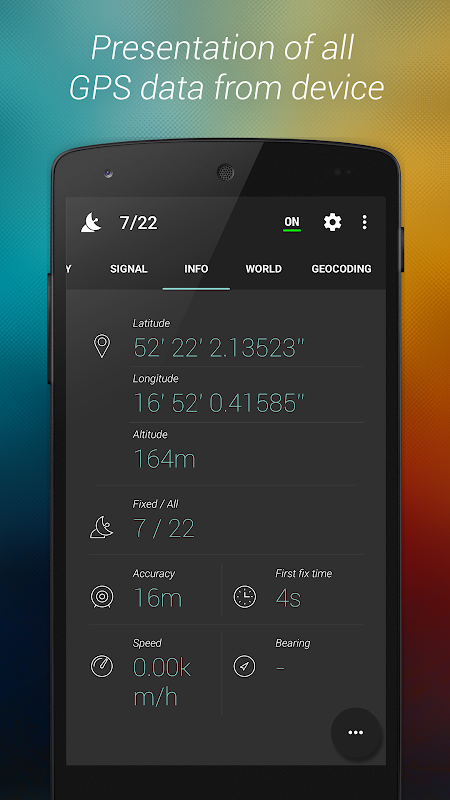 The nicest GPS test, status and diagnose app! If your gps navigation works horrible use this app to gps test, diagnose and fix your problem!