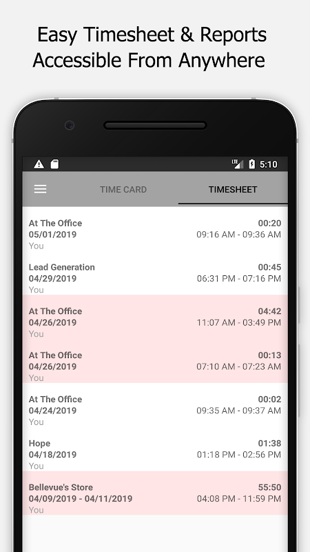 The app allows users/employees to clock in and out of a job and, enter job notes. Users can view all their time sheets as well in the mobile app. Managers can manage timesheets on the go as well.