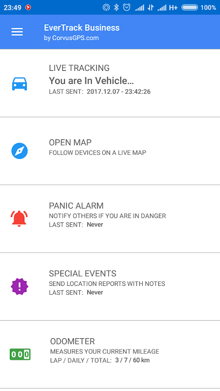 EverTrack automatically detects if you are In-Vehicle and calculate mileage. At the mileage counter (odometer) menu you can check your vehicle’s daily mileage, last trip mileage and total mileage too. EverTrack automatically tracks and calculate distances travelled by a vehicle. The mileage tracker feature is accurate, the difference is only about 1-5% compared to a car odometer. EverTrack is an accurate odometer for a car.