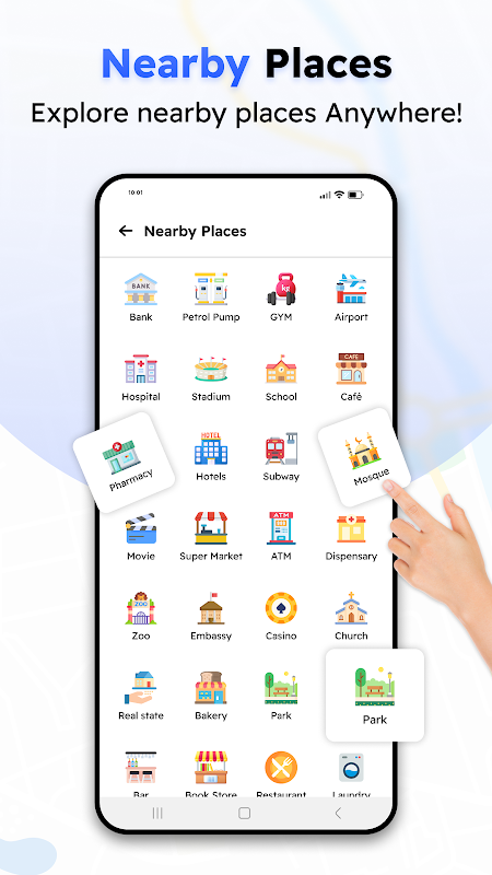 With Nearby search feature find the nearby places with ease. Find a gas station, ATM, restaurants, or hotel with accurate directions. Get to nearby places instantly and conveniently with GPS location.