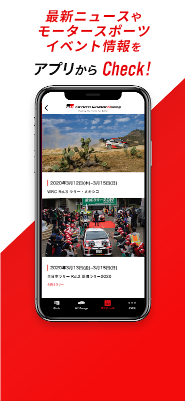 Check WRC, WEC, Dakar Rally, Nürburgring 24 Hours, SUPER GT, SUPER FORMULA from the app!