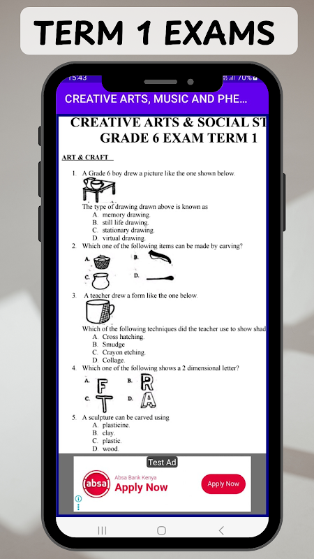 This Mobile Application features This app offers Grade 5 Arts,Music & PHE Exams and Marking Schemes. The Exams are downloadable for Editing and Printing.