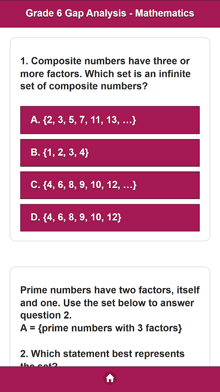 The Grade 6 Gap Analysis - Mathematics app is primarily aimed at Grade 6 students, teachers, and parents, but can also be adapted for use in other elementary grade levels. The app employs a user-friendly interface and interactive features to make the learning and assessment process engaging and effective.