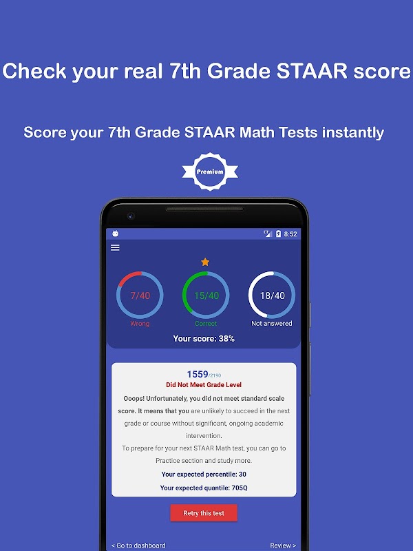 The goal of Grade 7 STAAR Math app is simple. It will help students incorporates the best method and the right strategies to prepare for the STAAR math test FAST and EFFECTIVELY.