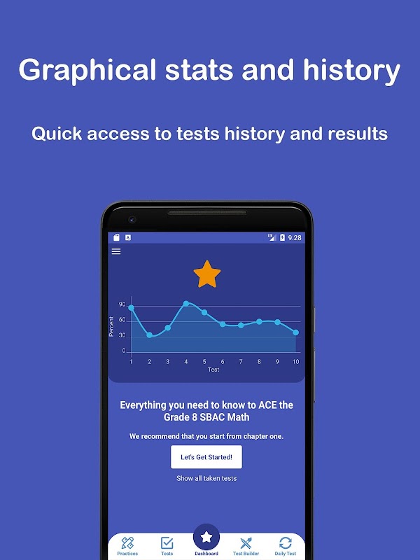 * Access to statistics of your answers in Grade 8 SBAC tests on a graph