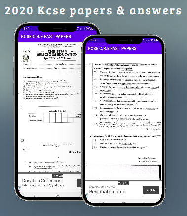 The app contains KCSE 2020 Past papers and their marking schemes - March 2021