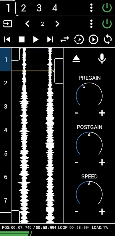 • Loads sound files of up to seven minutes length in any audio format