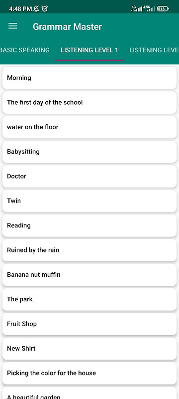 Intermediate Level အဆင့်ထိလေ့လာချင်သူတွေအတွက် စီစဉ်ထားတာဖြစ်ပါတယ်..ဒီ app ထဲမှာပါတဲ့ အသံဖိုင်အားလုံးကို offline နားဆင်နိုင်ပါတယ်.