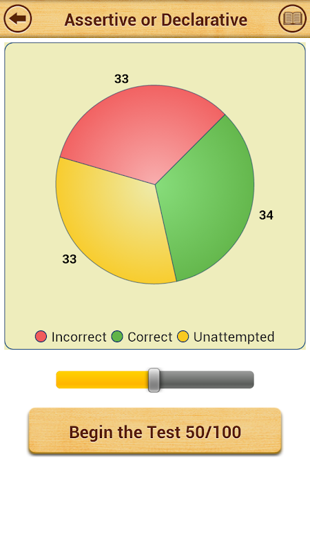 The app records your progress as you start giving practice tests.