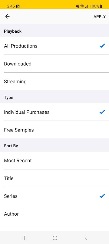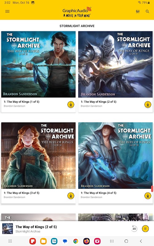 Simply purchase a Download from GraphicAudio.net, then activate the GraphicAudio Access™ App on your device and your GraphicAudio titles will be available to stream or download in a high quality audio format directly on your device. You can download a GraphicAudio title to your local device by pressing the yellow button next to the book name or you can press the book cover to start streaming immediately.
