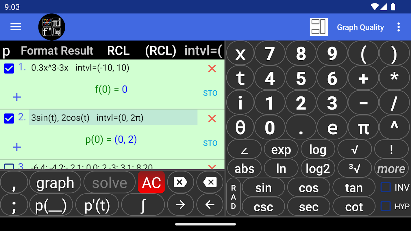 • The calculator can display a table of values for functions and parametric equations even with complex expressions.