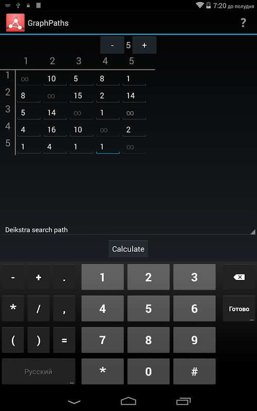 Find paths in graph (Deikstra and Shimbell methods), find gamilton contour