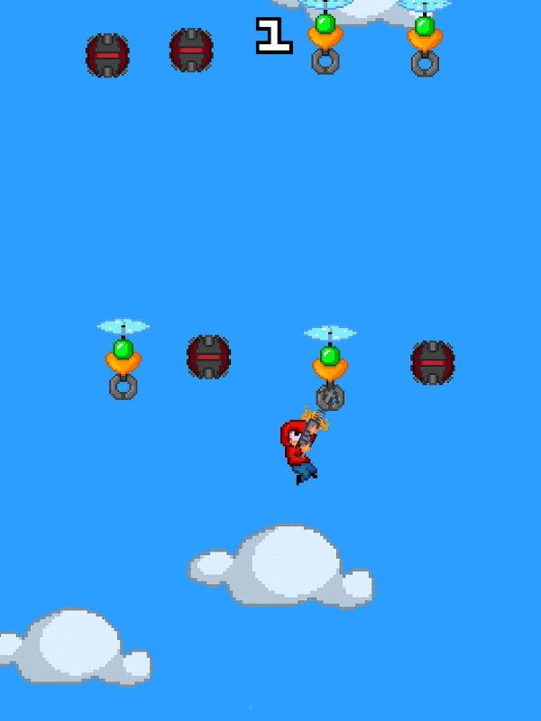 Get hooked into the action with Grappling Garry! Climb as high as you can by grappling to flying hooks while avoiding bombs. Get as close to bombs as you can for bonus points!