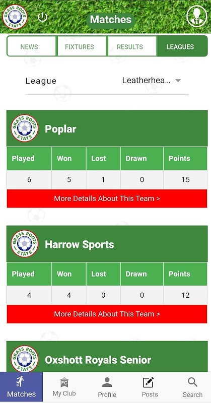 We currently have Leatherhead & District Sunday League football added to Grassroots Stats. Please contact us if you would like your league and club added.
