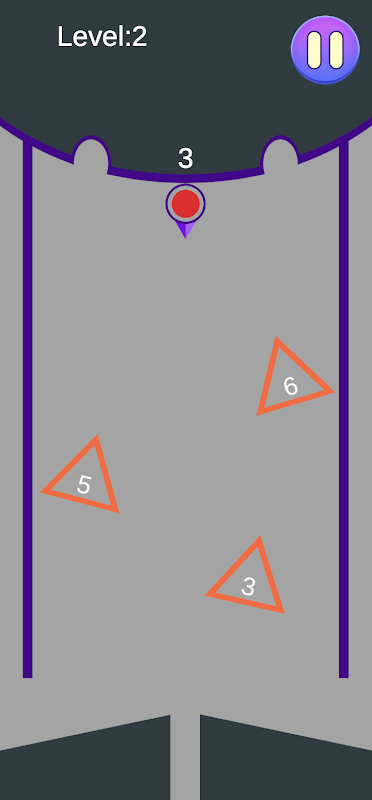 Long press the screen to rotate the pointer, release the screen, and the small ball will be fired in the direction of the pointer. The displayed number represents the number of times a small ball can be launched. Each launched small ball has two chances, but it needs to enter from both the left and right sides. When all the colliding objects do not exist, you win and can proceed to the next level.