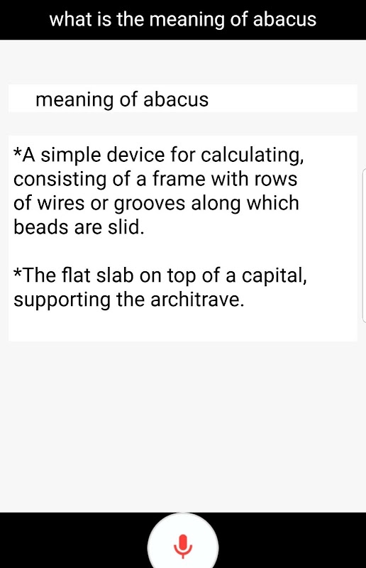 For solving other queries, you can tap on the voice navigation bar button at the bottom and which will open a page having a virtual assistant for you. You have to click on the tap button of the mike and start speaking whatever you want to ask. Additional to these, you can ask the meaning of any word which you want to ask.