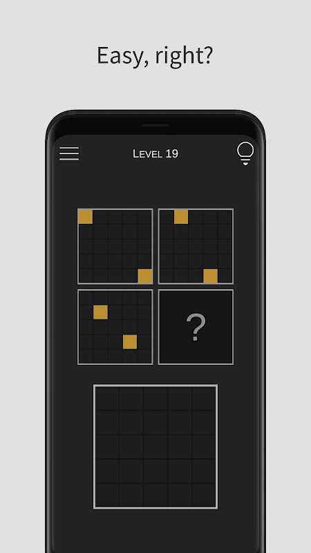 The idea is simple: given three grids, draw the one that completes the pattern. Be careful, though, as it is more difficult than it seems. It's time to see if your mind is actually sharp!