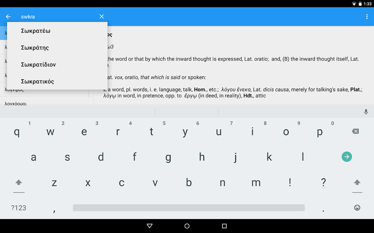 • Flexible lexicon search with instant search suggestions. Search using either Beta code or Greek characters.