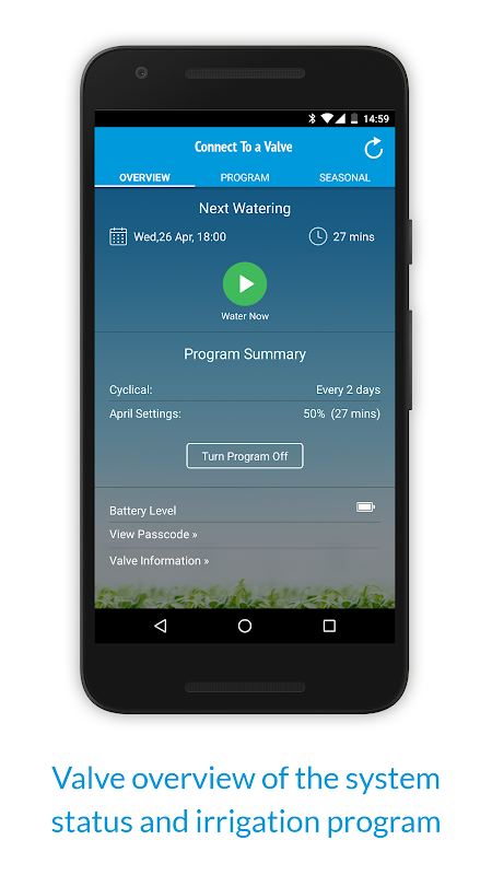 The GreenApp is BERMAD's smart irrigation valve with Bluetooth controller and a friendly user application to manage your garden watering. connect your GreenApp via your smart phone to set up your own customized and efficient irrigation program for water saving with seasonal adjustment.