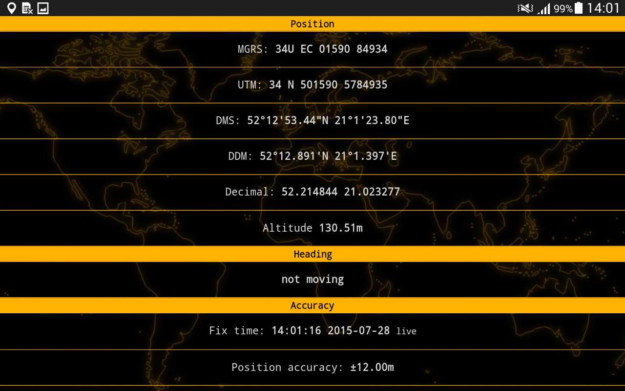 Displays your GPS position in many coordinates systems, including MGRS and UTM.