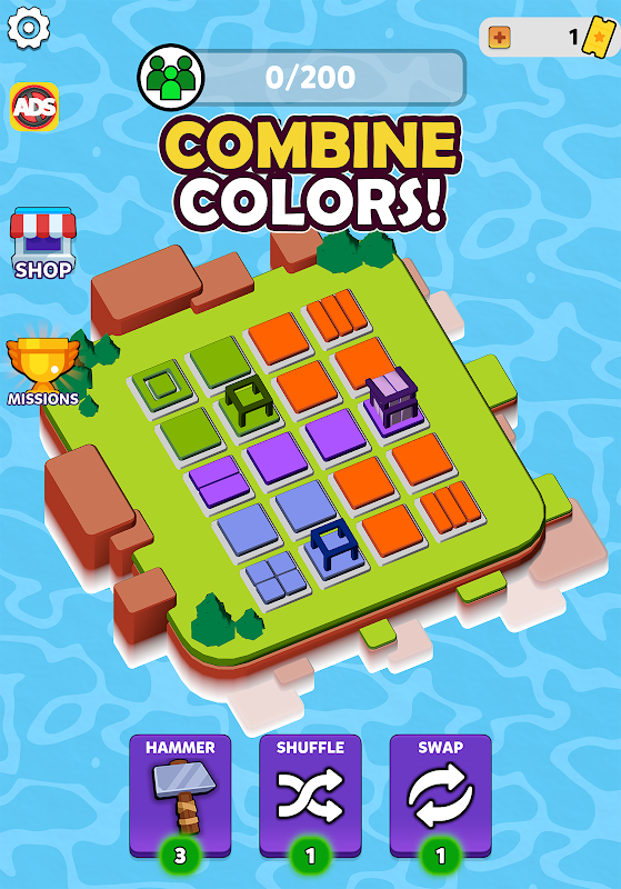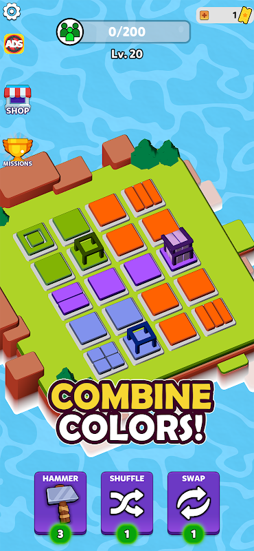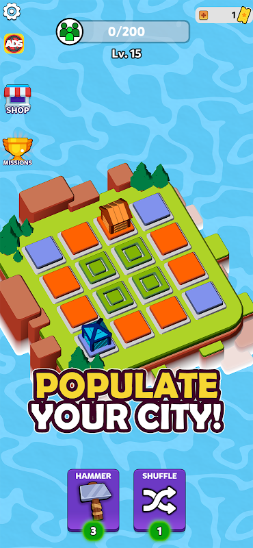 Step into the vibrant world of our puzzle game, where your strategic skills will be tested! Match grids of the same color to create magnificent buildings and boost your population. As you advance, use your growing population to construct and unlock new rooms, expanding your architectural prowess.