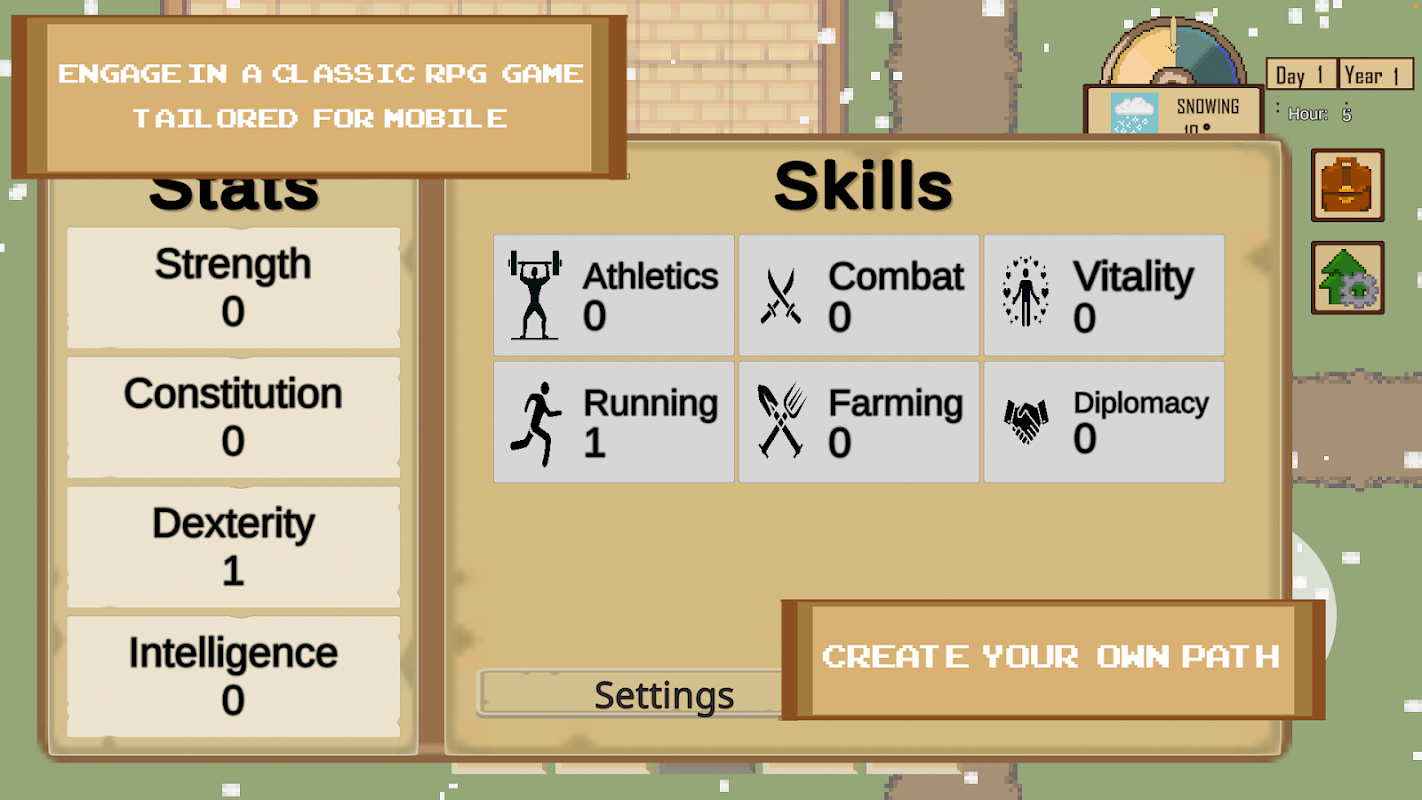 • Dynamic Calendar System: Navigate the passage of time, where seasons change and events unfold. Plan your activities wisely, as each day presents new opportunities and challenges.