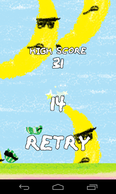 Play as Gritty Melon while you duck and dodge the evil Sunglasses Banana Empire that is attacking your home world. Avoid the bananas and don't get smashed!