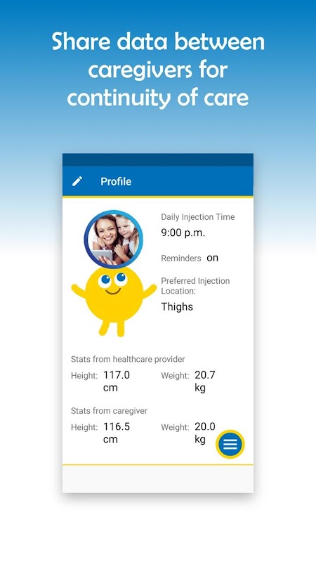 • Helping parents and carers establish a daily injection routine by recording injection sites and setting reminders