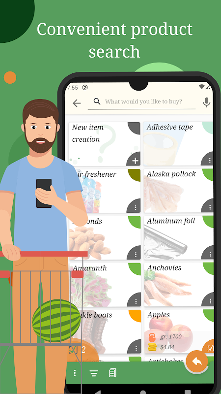 Install Buy smth lite, a simple and completely free application for personal grocery shopping. With it, your shopping trips will be easier and faster. Comfortable and smart design, adaptive price calculator, and other functions will increase your productivity and save time.