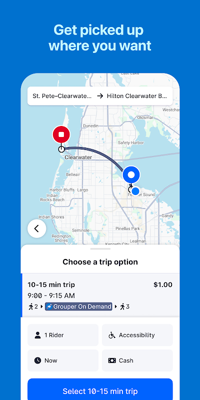 Catch an affordable, direct ride from PSTA! Use this app to hail a ride on the Grouper from St. Pete Clearwater Airport to Clearwater Beach, or on the Snapper in Clearwater and Safety Harbor. Schedule your ride in advance or request on demand in just a few short steps.