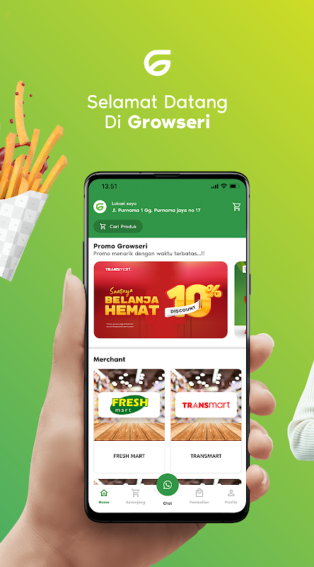 Growseri is a shopping application for kitchen needs in the city of Pontianak.