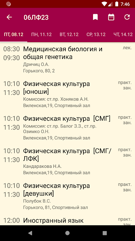 The official application of the schedule of classes for students and teachers of Grodno State Medical University.