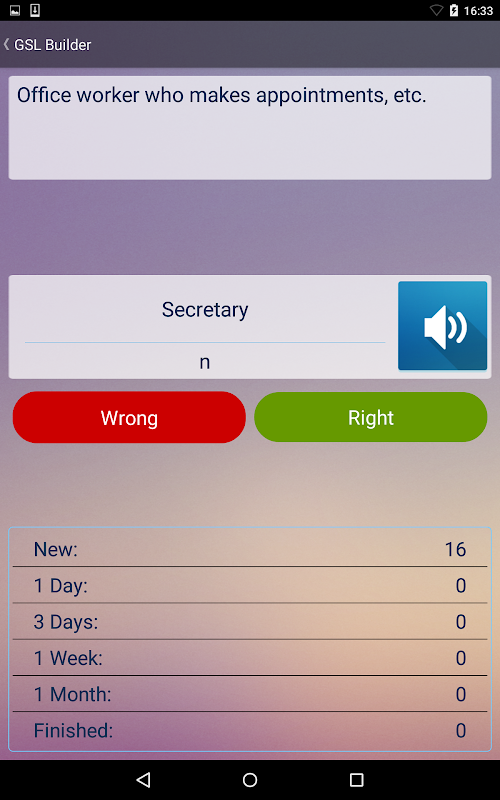 5. If your guess is right, tap 'Right", and the app will move it to the next learning stage. You will see it in one day from now. If your guess is wrong, tap "Wrong" you will see the word again soon.