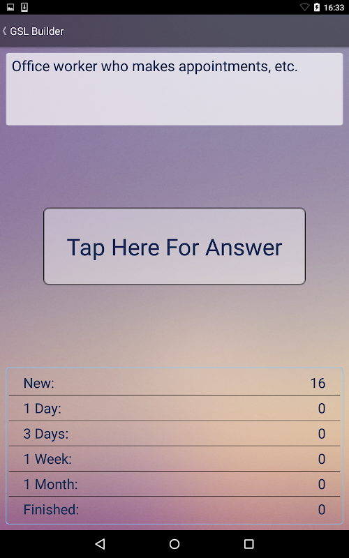 GSL Builder uses Intelligent Flashcards technology. The app is designed to lessen forgetting by bringing back words for you to study before you forget them.