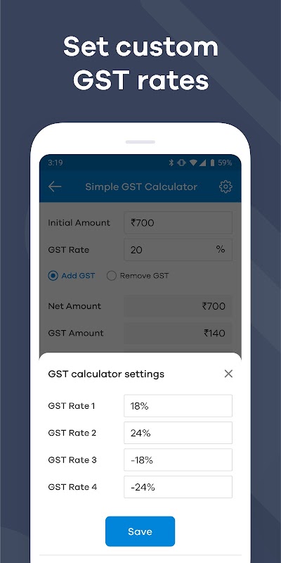 » Add or Remove the GST from given amount with touch of a button