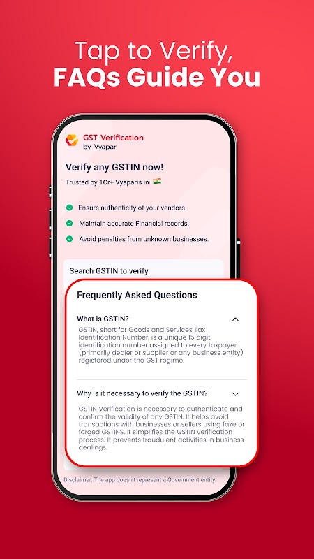 The app is built with ease-of-use in mind. Entering a GSTIN number is all it takes to get the verified business details instantly.