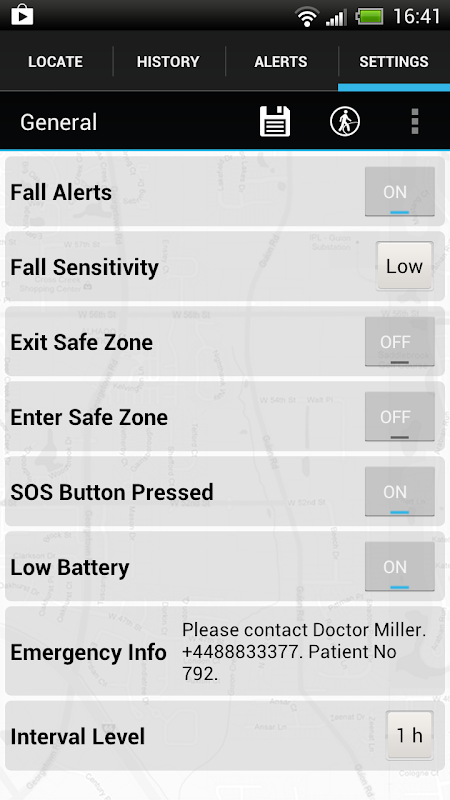 With this app you control the settings of guard2me© and you are able to see in an emergency the location of the watch wearer and receive alerts directly on your mobile.