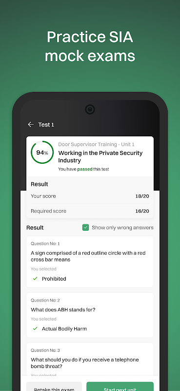 Prepare to pass first time by testing your knowledge with the latest security mock exam questions. Mock exams are available for all SIA qualifications including Door Supervisor, Security Guard, CCTV and Close Protection training courses. Gain access to realistic timed mock exams with instant results.