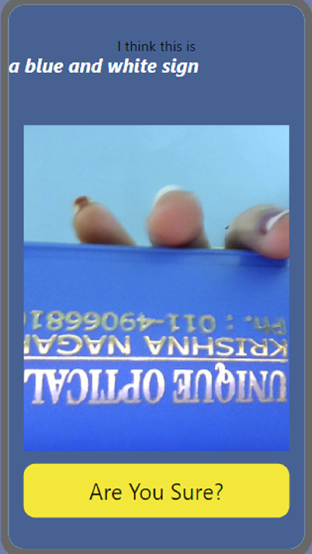 This app can guess any photo using your camera. This APP uses Artificial Intelligence for identifying things/objects.