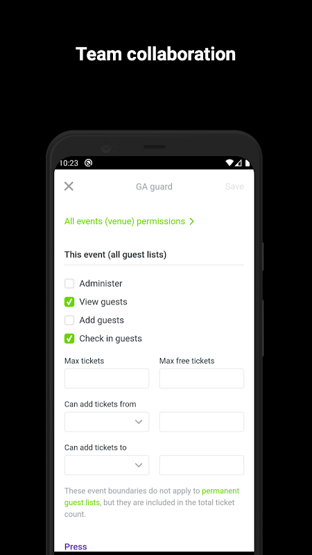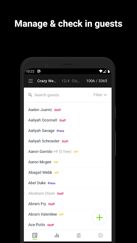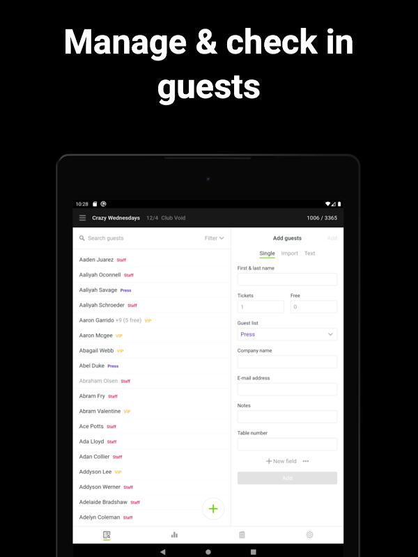 For example, limit promoters to only be able to add and see their own guests and door hosts to just check in guests.
