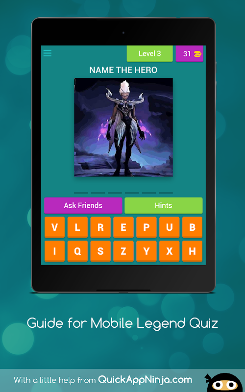 A quiz-guide for mobile legends players. Name the heroes, skills and their gears