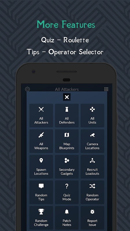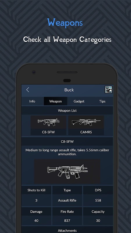 This app acts as a reference book or guide in learning about the game Rainbow Six Siege.