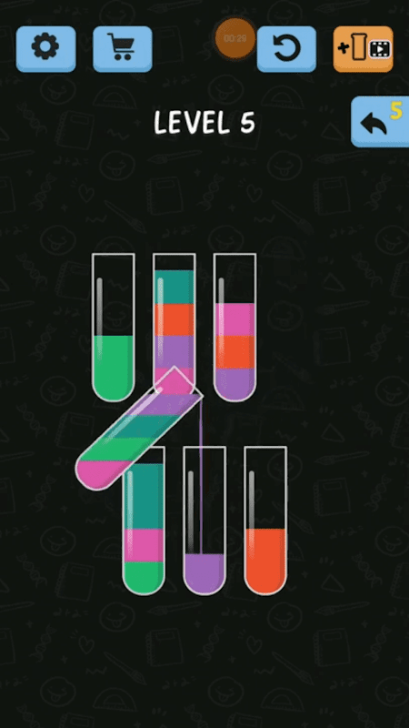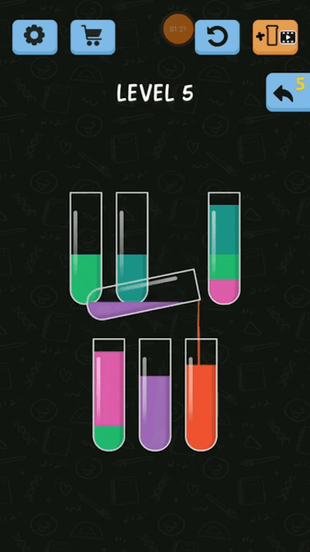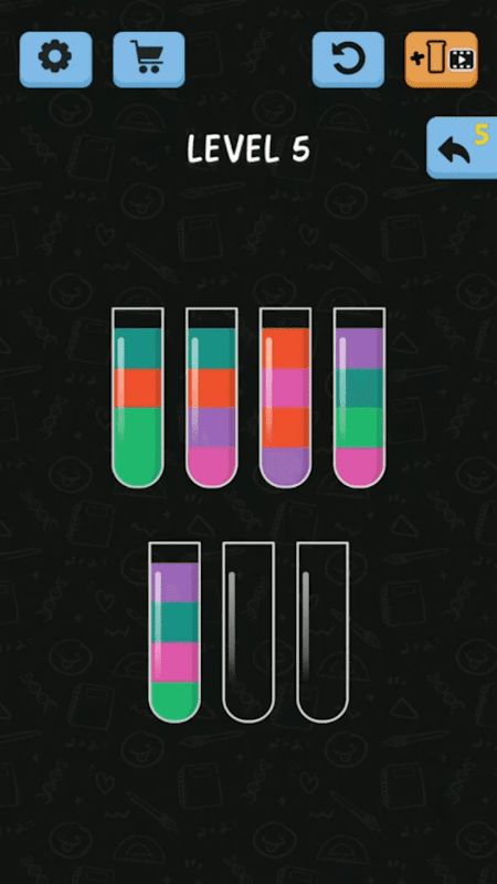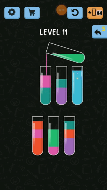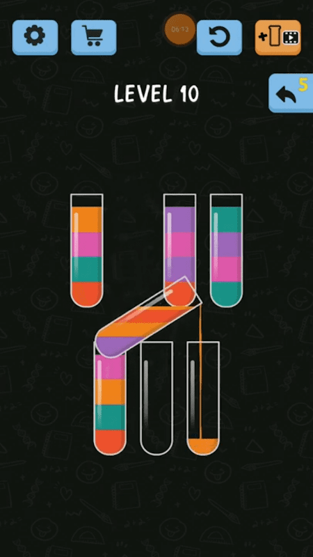 Witness an unconventional match puzzle gaming arena in which you will be required to apply skills, focus and strategy to solve the game by matching colors in as few moves as possible. Test how far you can go at juggling multiple colors, patterns and tubes in a single level at a given time.