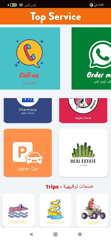 A service application that includes delivery of orders, delivery of individuals, advertisements for real estate and home services