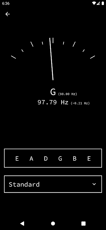 Guitar Tools includes a fully featured tuner, with the ability to select from a list of preset tunings, or even create your own custom tuning.