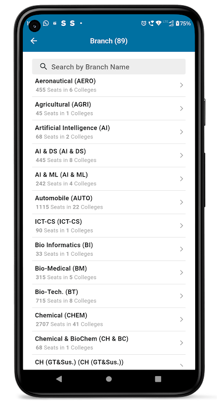 » List of Branches - List of colleges of 50+ branches of engineering like Chemical, Computer, Civil, Mechanical, Electrical, EC, Aerospace, Automobile etc.