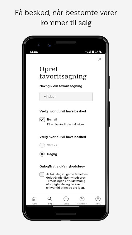 With GulogGratis's app for Android, you always have the marketplace close at hand - both on mobile and tablet. With the app, it is easy to buy and sell used and new products on one of Denmark's largest marketplaces.